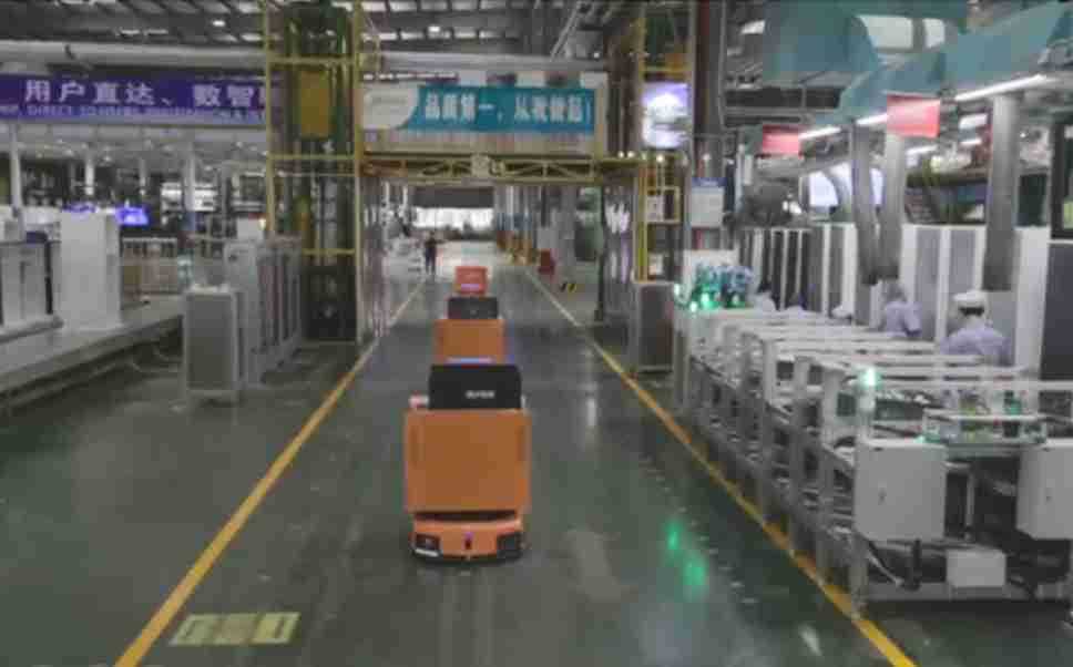 为车载冰箱物流配送打造的智能解决方案,,包含产中物流通过潜伏举升AMR搬运至线边,,产后成品物流智能仓储,,流程包含产中物流智能齐套入库,,,,线边安灯叫料AMR智能配送至线边,,,,成品入库、、出库,,通过无人堆高车机器人,,,,智能仓储管理替代人工作业管理,,,,实现更高存储、、更高效率、、更具柔性化的解决方案。。。