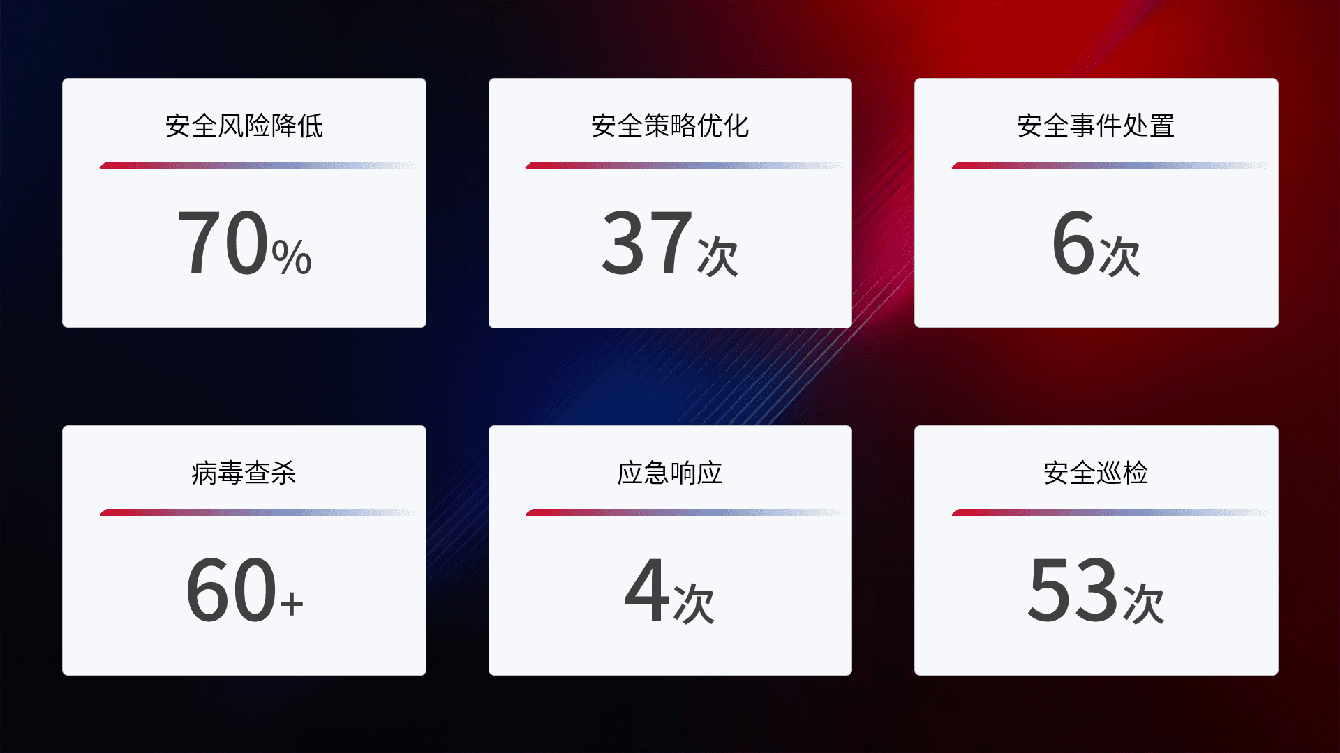 提供全面的安全事件报告体系,,,,包括处置报告、、周报、、、、季度和年度总结,,,,结合持续监控,,帮助客户深入了解网络安全状况。。